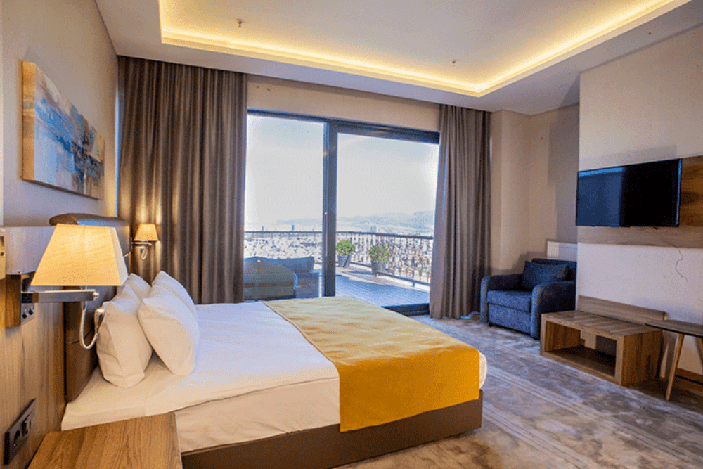Our modern and stylishly designed rooms are carefully prepared for your comfort and offer our guests privileges such as spacious accommodation areas with city views, bathrooms with hammam concept and 24-hour room service.