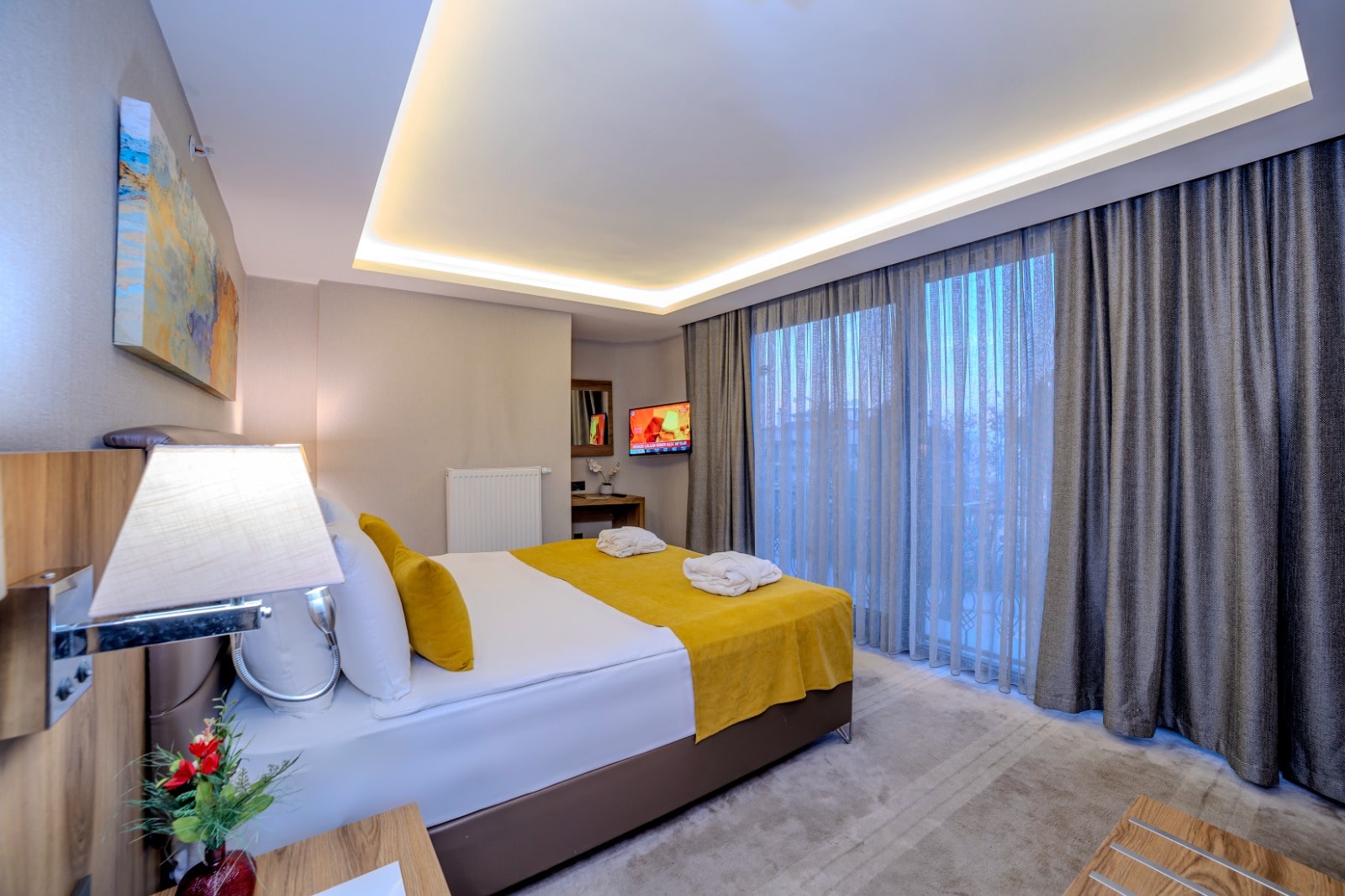 A great option for business and leisure travel with city views. 65m2 usage area and large single bed (french bed).bedroom and living room with comfortable living areas where you will feel at home in the living room and much more is offered for our guests.